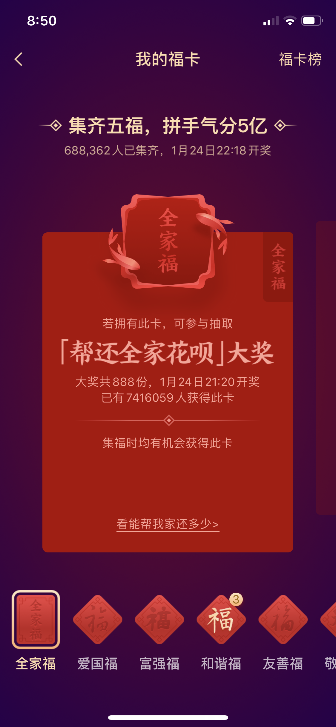 Then, for Spring Festival 2016, AliPay, WeChat Pay’s main payment competitor, came up with a cracking campaign that was to be held and expanded annually. In order to receive digital hóngbāo, users can use their phone cameras to scan any fú they come across during CNY (even hand-written ones). Upon scanning, a red envelope will appear and open to reveal one of five randomly allocated traditional Chinese blessings: dedication, harmony, patriotism, prosperity and friendship. Users must collect the whole set of these special blessings in order to be entered in to the great AliPay raffle. This year, 500 million RMB in cash plus extra bonusses, such as a full-year reimbursement of all loans incurred on Huabei, were in the pot that was shared on New Year. This year, a staggering 318 million users participated in the campaign! As in a raffle, payouts were random and ranged from 1.68RMB to 666RMB (6 and 8 are lucky numbers in China).